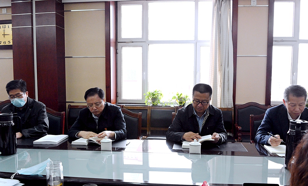 4月19日下午,學校領導班子學習貫徹習近平新時代中國特色社會主義思想主題教育專題讀書班在辦公樓504會議室開展第三天集中學習,校長、黨委副書記董玉庭主持學習活動。