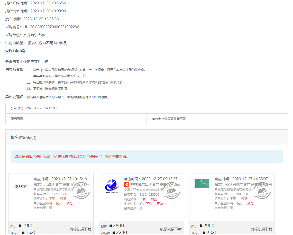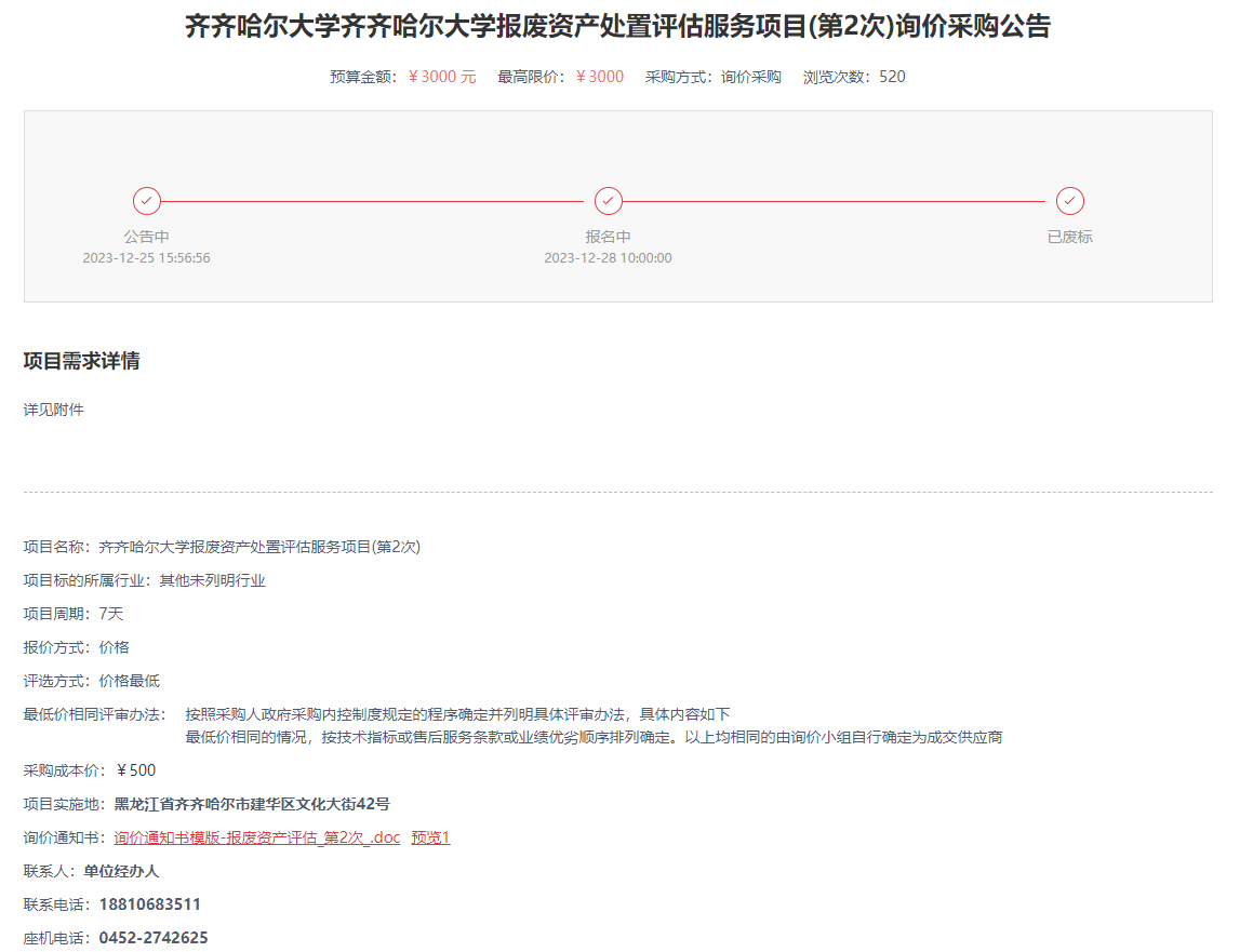 上一條:齊齊哈爾大學報廢資產處置評估服務項目(第3次)詢價采購公告(轉自黑龍江省政府采購網)