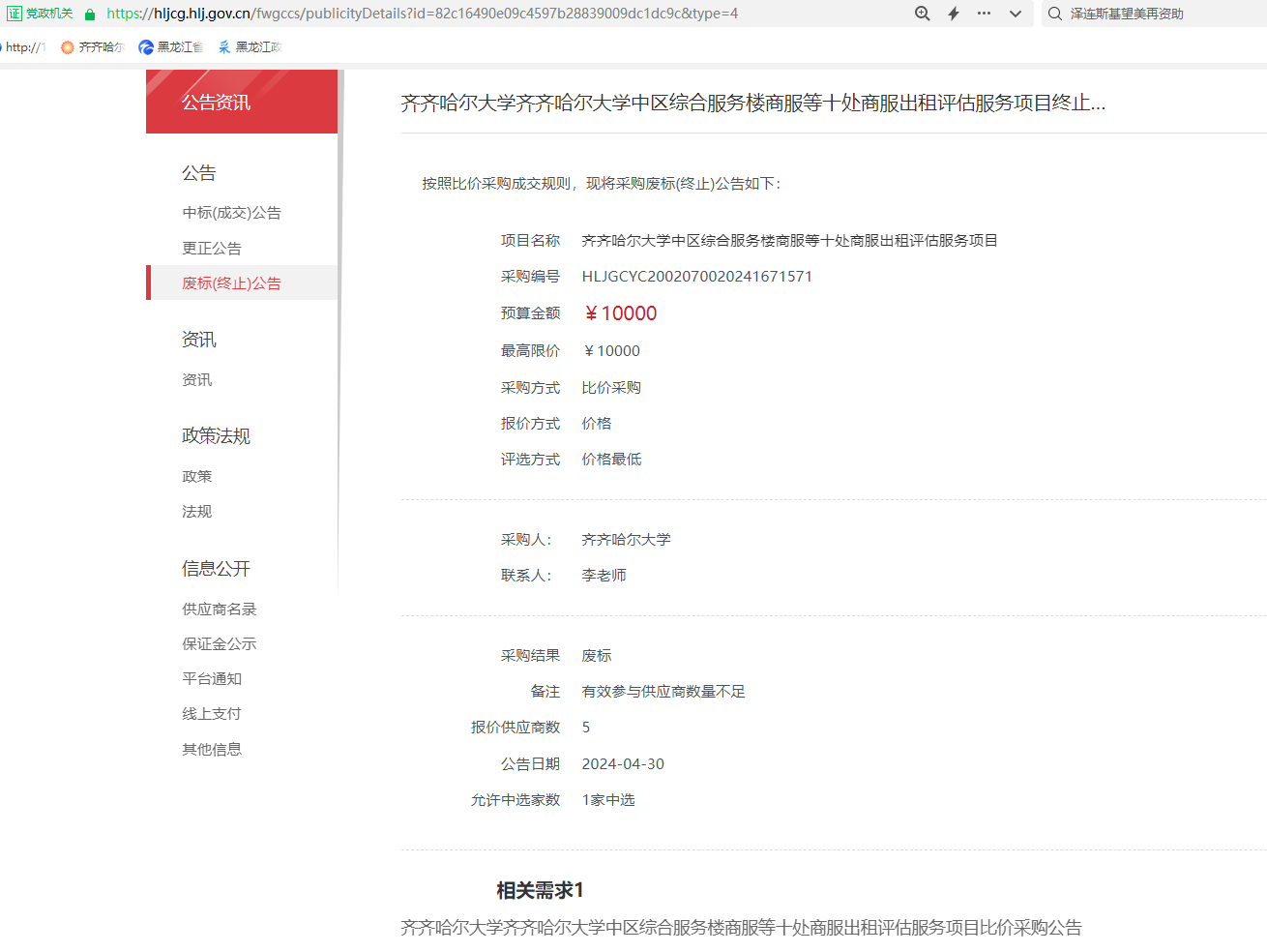 上一條:齊齊哈爾大學材料科學與工程學院實驗耗材(雜品類)及實驗化學試劑采購項目包2(二次)詢價公告(轉自中國政府采購網)